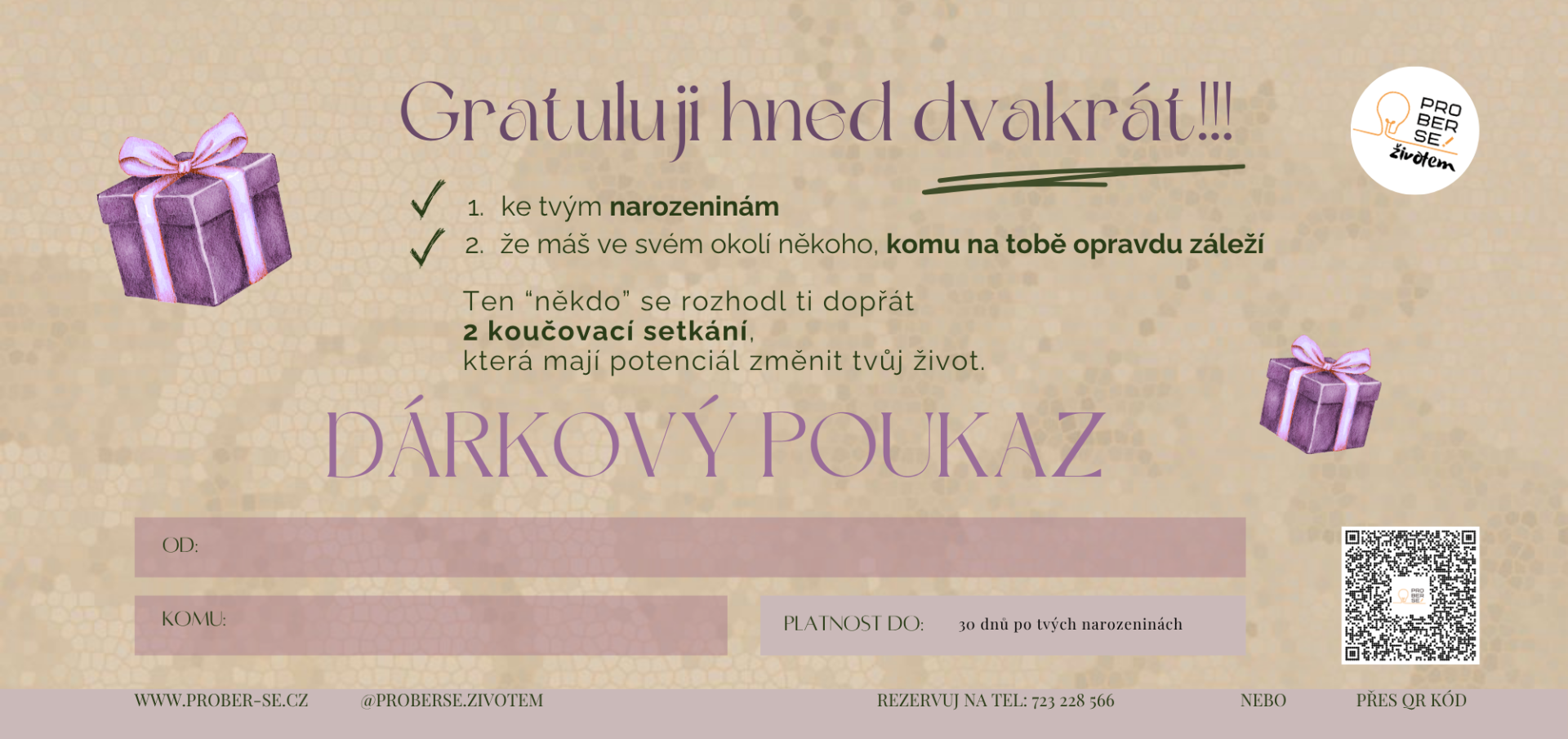 Nyní k dispozici vouchery na dvě koučovací setkání za speciální cenu 990,- kč (+doprava). Narozeninové vouchery jsou platné 30 dní od data narození.